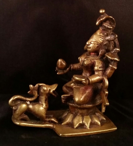 Here the goddess is seated in Ardhapadmasana (Half lotus asana) and is holding lotus bud, goad, noose and a lotus bud in her hands (Starting from lower right hand clockwise). The goddess is sitting…