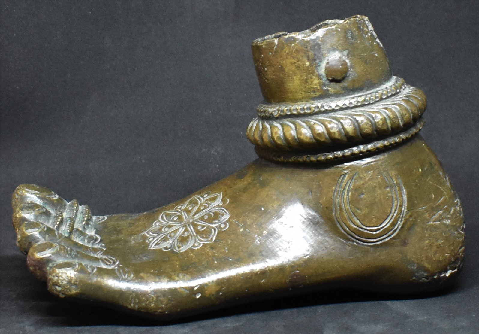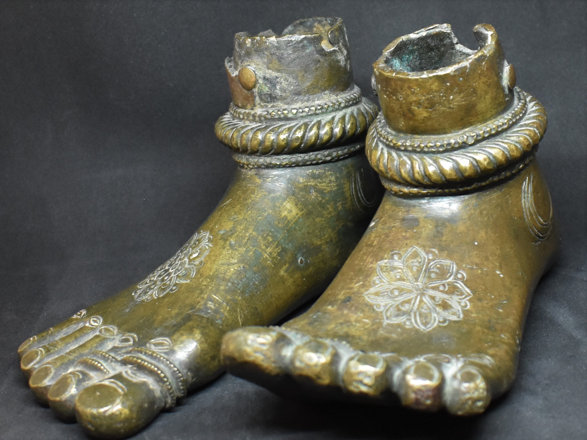 This bronze is from Tamil Nadu and it is about 17 cm long and 9.5 cm high. This bronze may date to the nineteenth century. It is unusual to see a well preserved matched pair of feet.