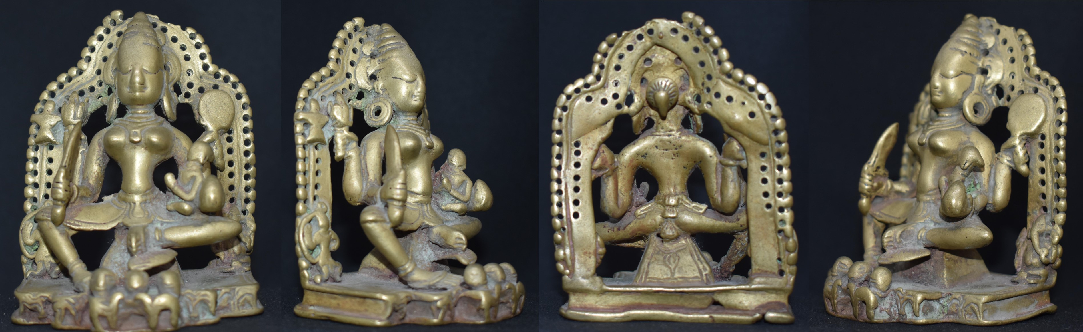 The identification of this Goddess as Ambika is tentative. But for sure she is a mother Goddess from the Hindu Pantheon and it is a form of Parvati. The book on Heritage of Metallic Art of Gujarat has an example of Ambika (page 235) and it is very close to the iconography of this example.