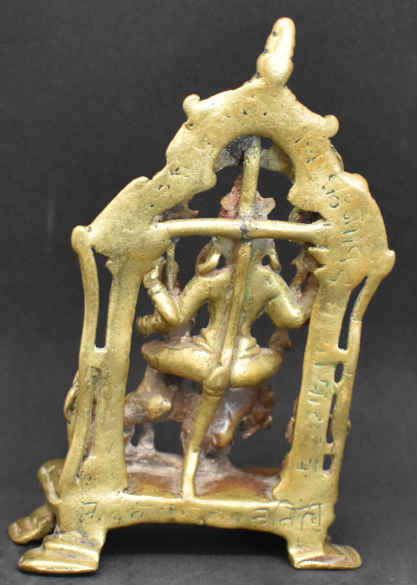 This bronze is probably from Western India and more specifically from Gujarat, going by the studs that connect the deity to the Prabhavali. It is about 13 cm in height. I do not have any estimate of the age, but this is probably old enough (as in older than 150 years) for it to be considered an antique.