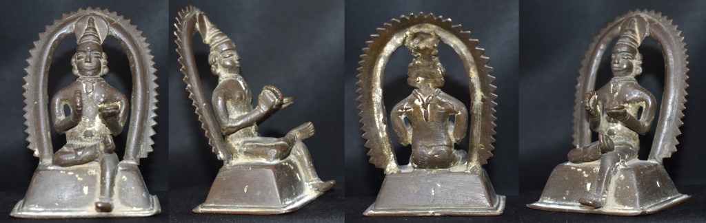Leaves you wondering who this could be. Going by the alloy’s colour, plain look pedestal and Prabhavali design, this bronze is from Kerala.