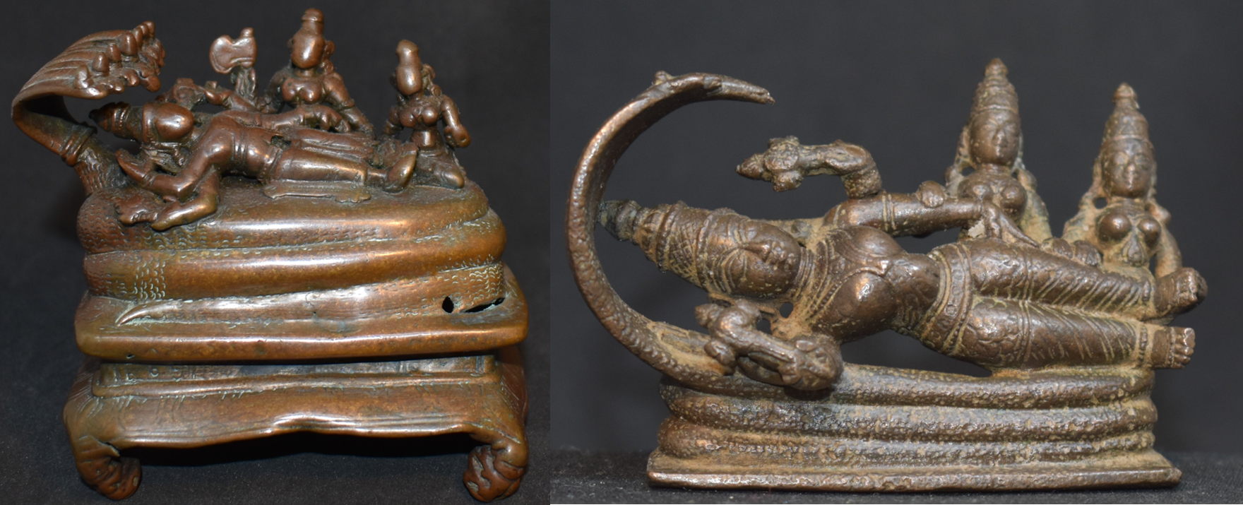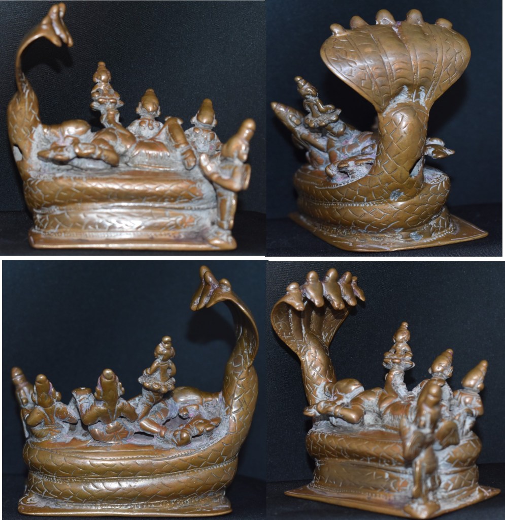 Note: This version of Vishnu is sought after by Sri Vaishnavites and collectors. Every collector and larger museum have one or aspires for one. Larger bronzes, of the size of Utsav Vigrahas, in this subject are even rarer.