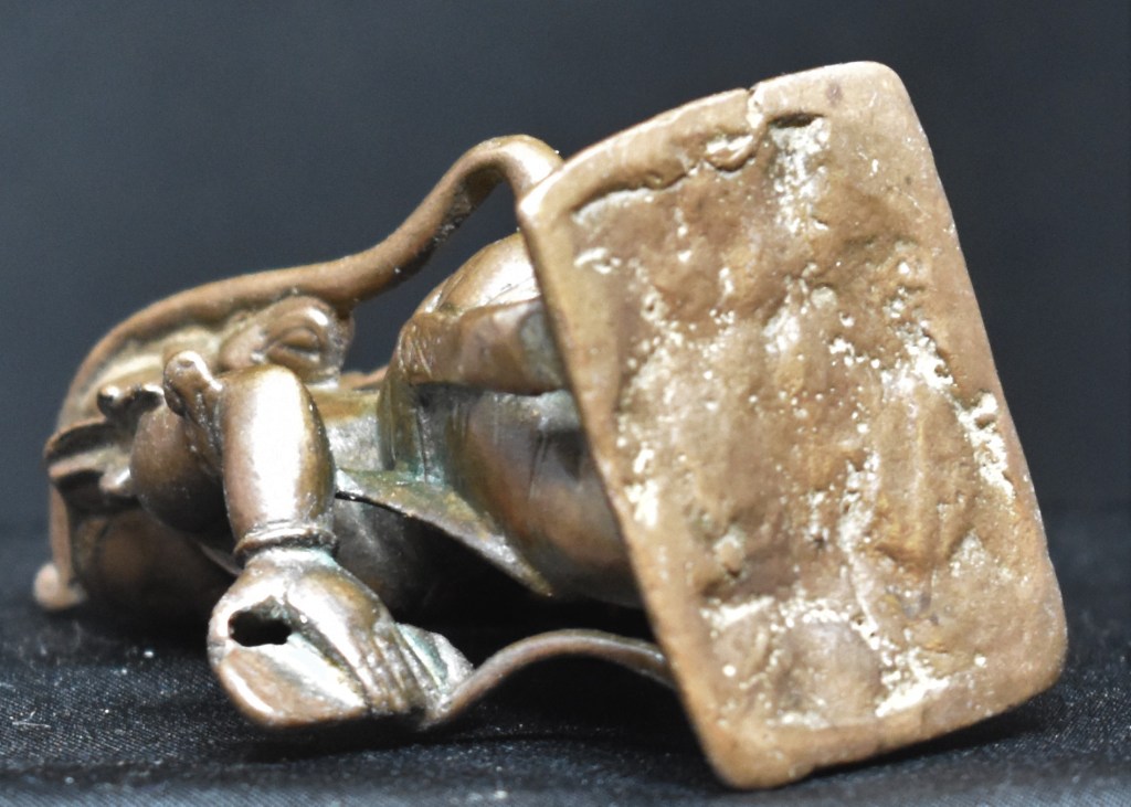 This bronze is from South India, maybe Tamil Nadu. It may date to the 18th century or earlier. The Vigraha is about 6.2 cm in height.