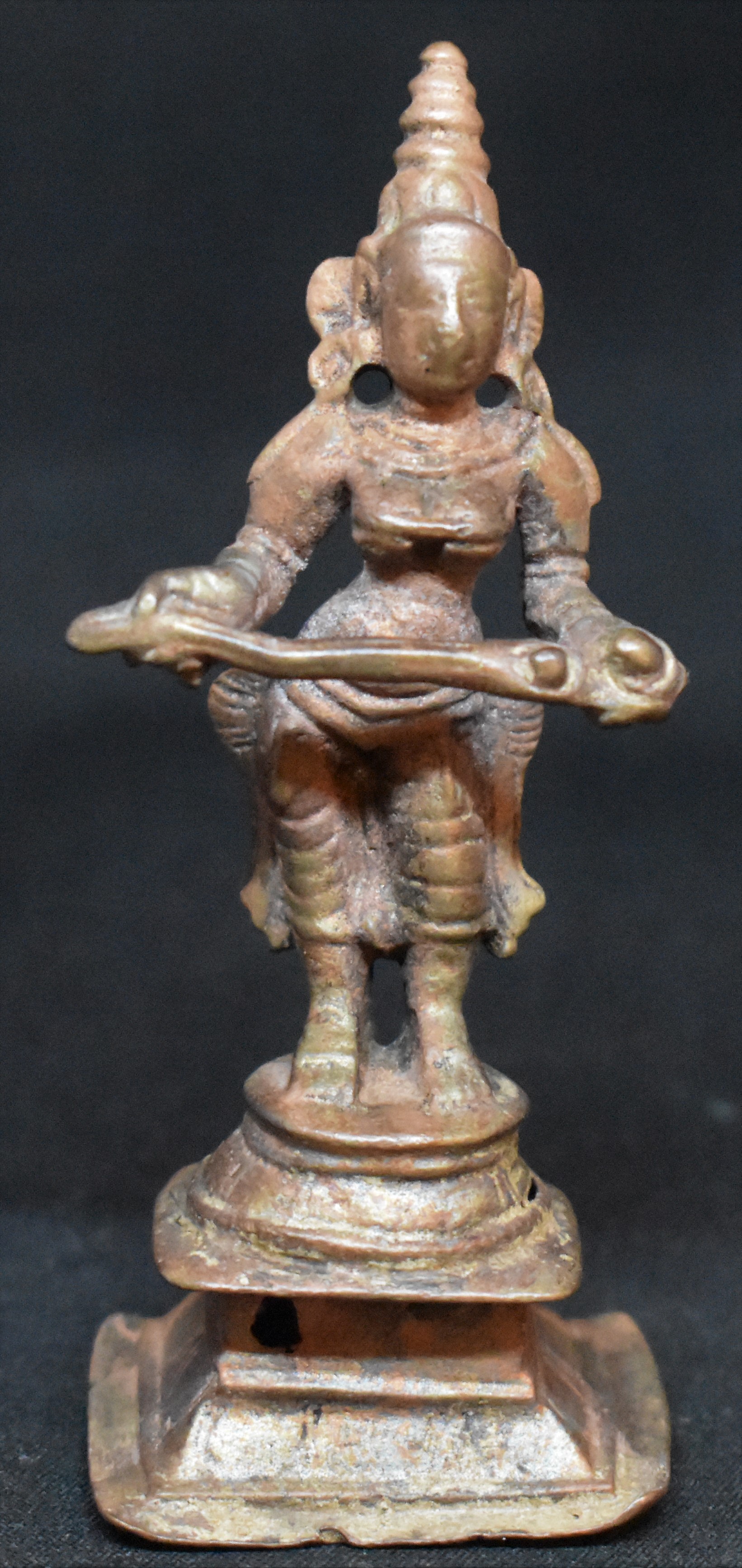 This bronze is about 8 cm in height. The face shows significant ritual wear. This may date to the eighteenth century or earlier.