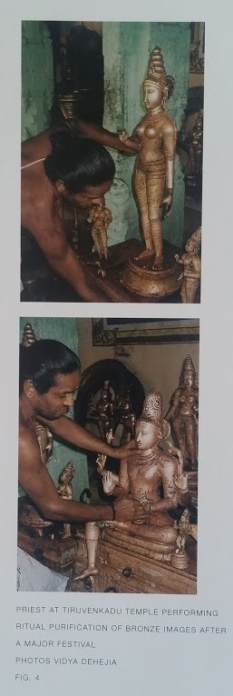 In India, the Vigrahas are cleaned regularly whether in temples, other religious places or at homes. Quite often every day. This cleaning is in addition to the daily Abhisheka, ritual bathing. Let me quote a few sentences from the book The Sensuous and the Sacred, Chola bronzes from South India by Vidhya Dehejia.