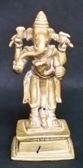 One more Ganesha. A valampuri (with the trunk turned to the right). Ganesha is a remover of obstacles and the valampuri is considered a highly auspicious form of Ganesha. Ganesha is holding battle …