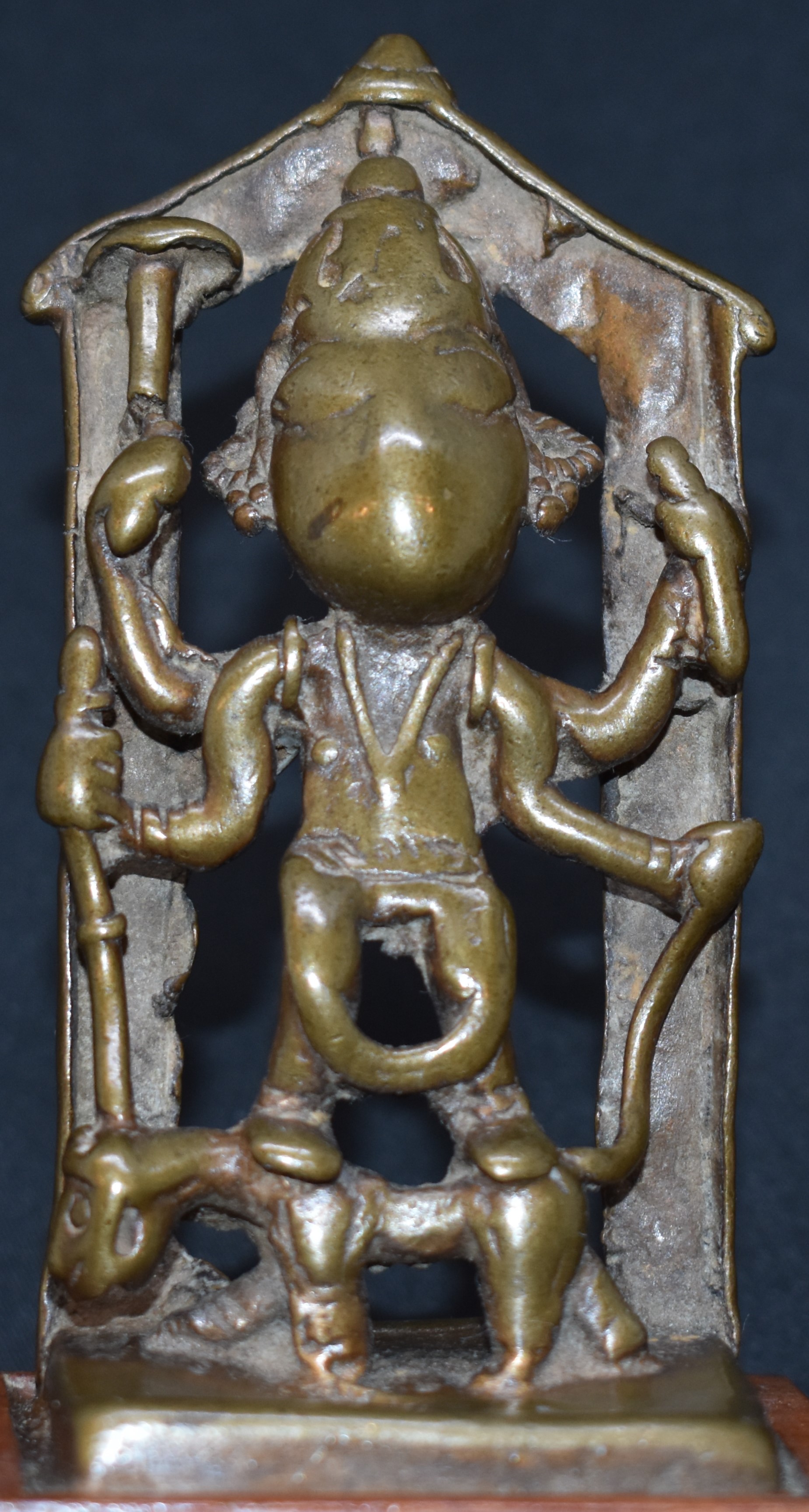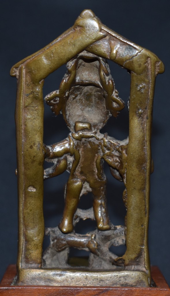 One of the features of Himachal bronzes is the sparing use of material. That is the case here. Notice Durga’s scooped rear head (back view) and the thin casting.