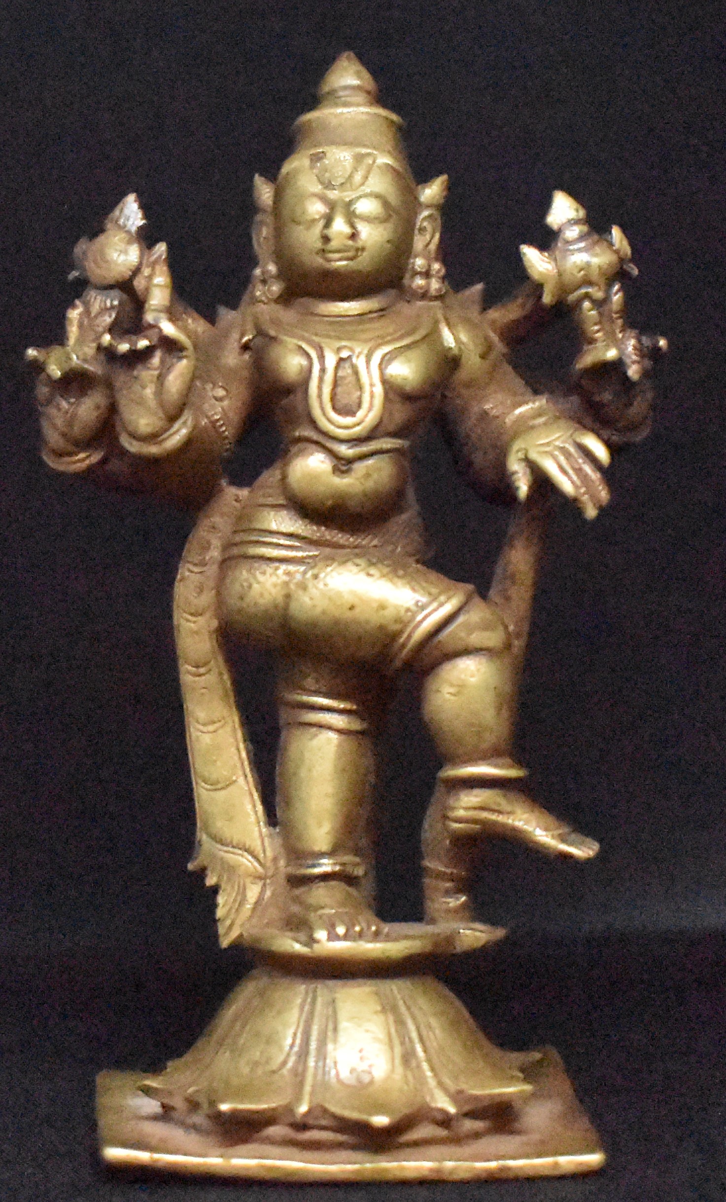 This Vigraha is from Karnataka, going by the spurring and the raised lotus petals. This may date to the nineteenth century.