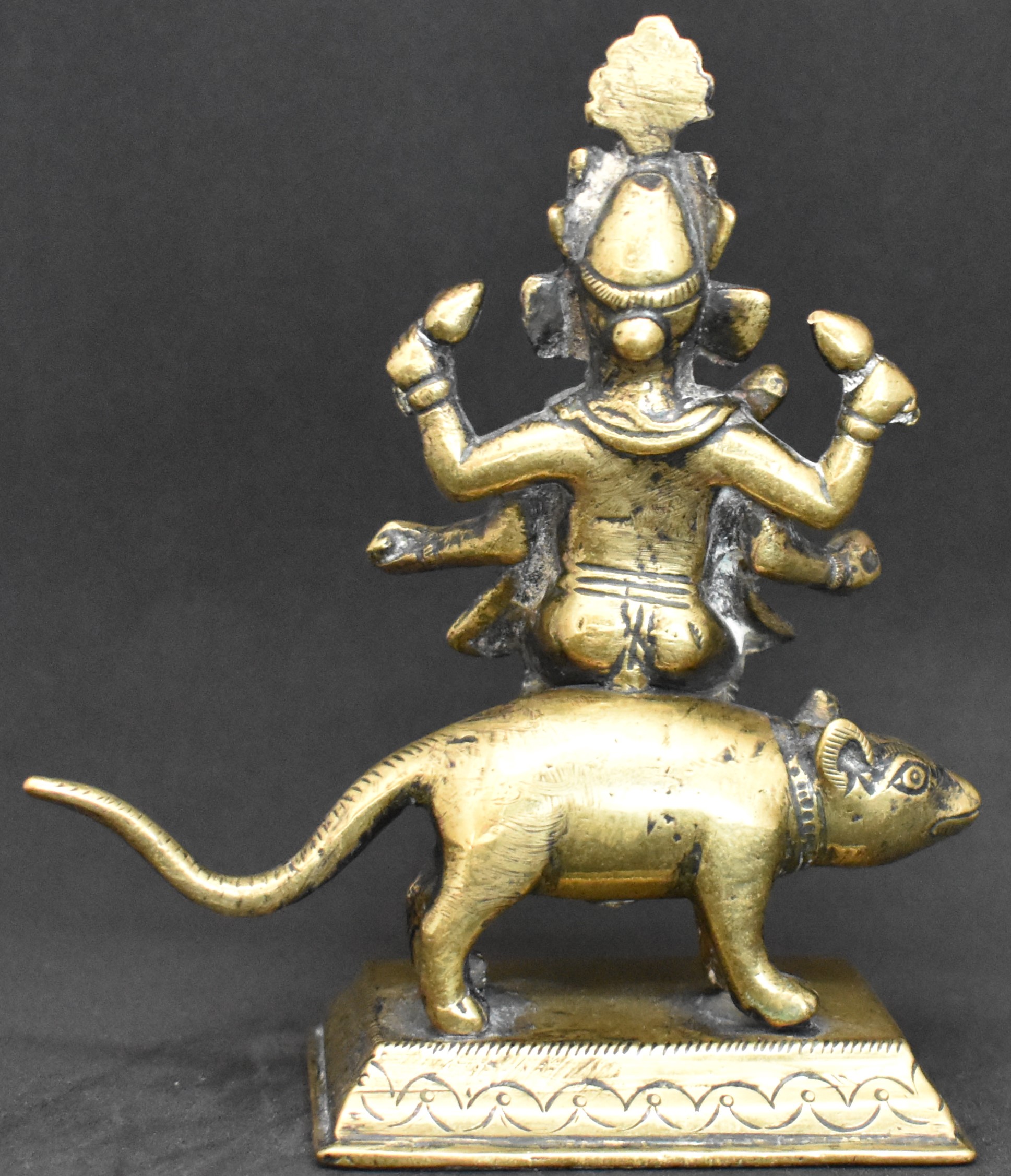 It is not often you come across a Ganesha riding his vahana, rat, of this size.