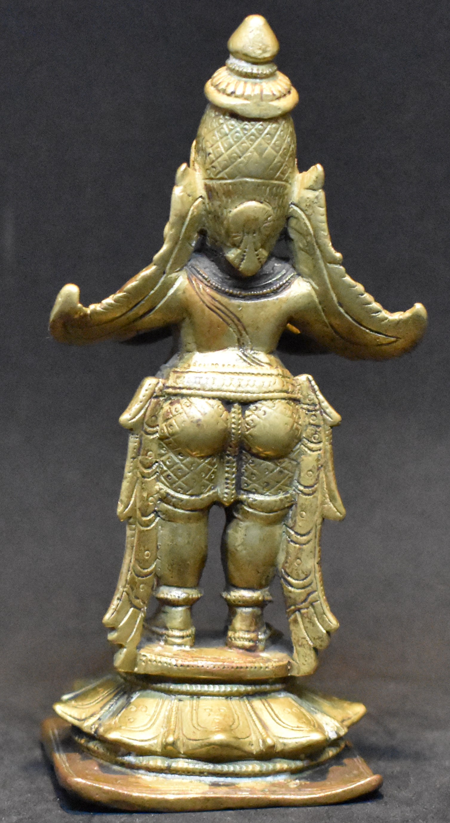are followed. Except for the long garland or chain running almost to the knee (Garuda on the right), the structure, ornaments, posture, relative proportions and even the facial expression match. The differences in the patterns on the dhoti (lower garments) and lotus pedestal design indicates the leeway for artistic expression.