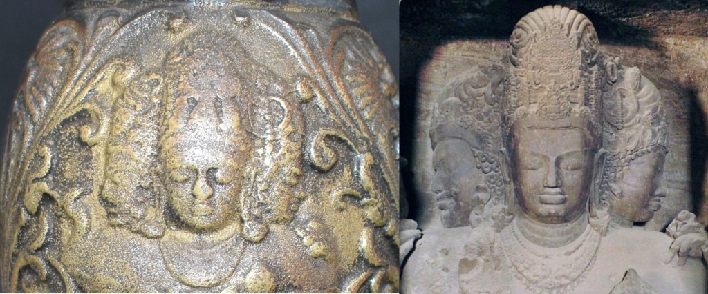 Another thing that caught my attention is the depiction of Mahadeva. I compared it with Mahadeva of the Elephanta caves. It is obvious as to where the inspiration came from. Elephanta photo courtesy smarthistory.org.