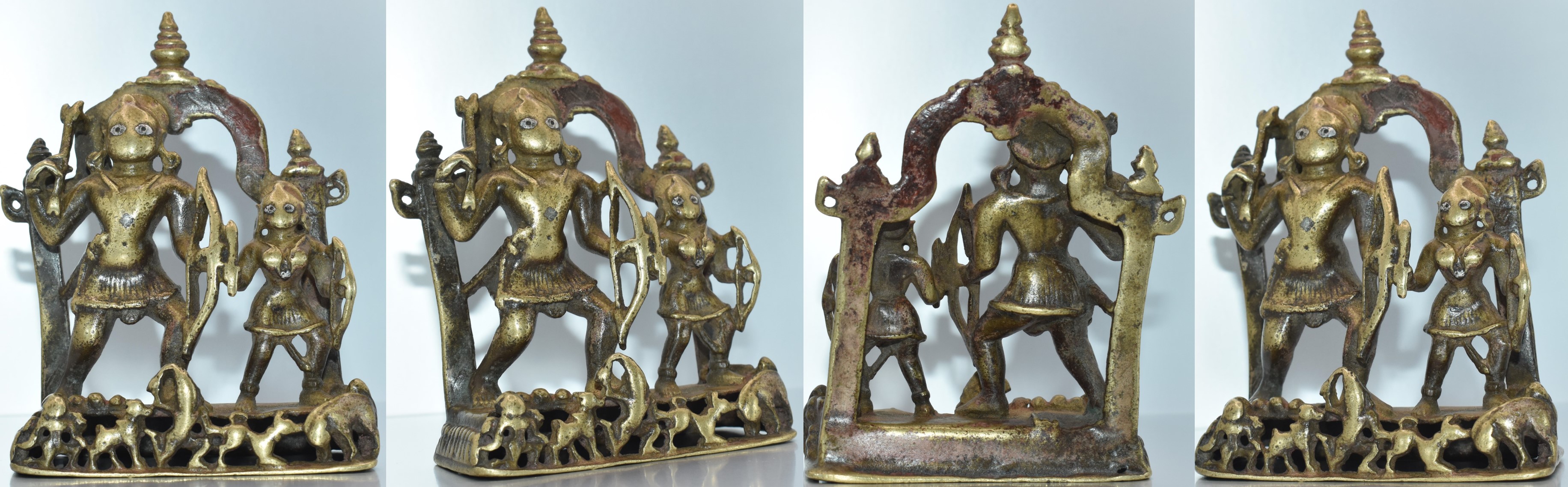 This is a narrative bronze, depicting a scene from a Puranic story. It depicts Shiva and Parvati as a Kirata couple. Kirata refers to people who live in a mountainous region.