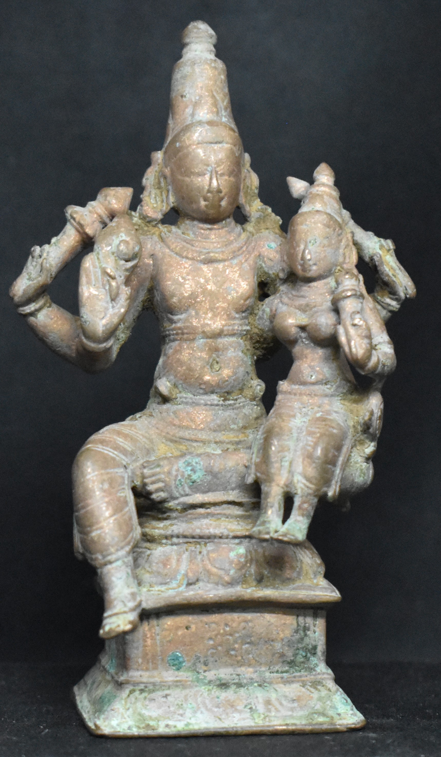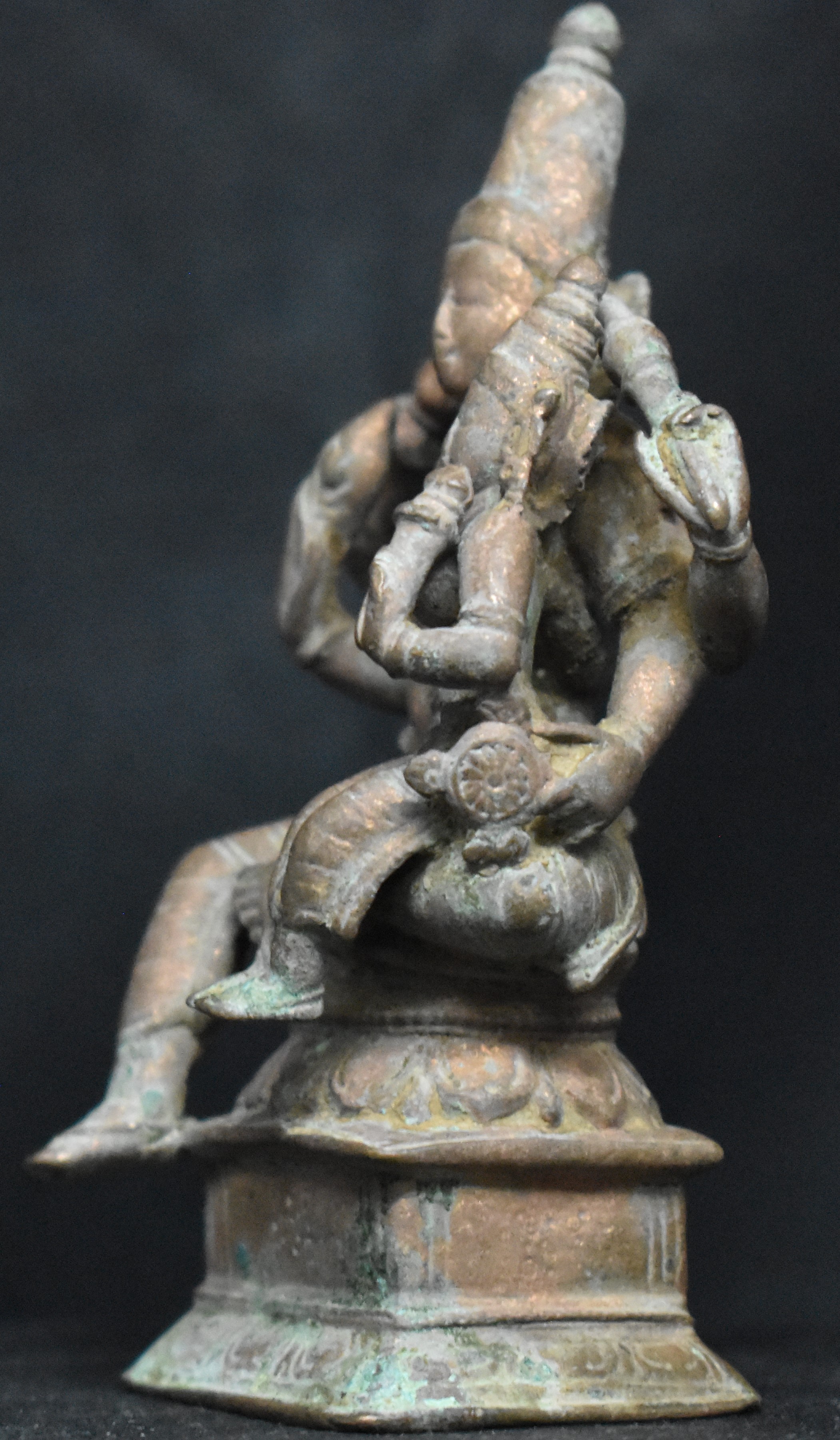 This Vigraha is from Tamil Nadu, and there is a strong Vijayanagar influence. This bronze may date to the eighteenth century. This Vigraha is about 10 cm in height.