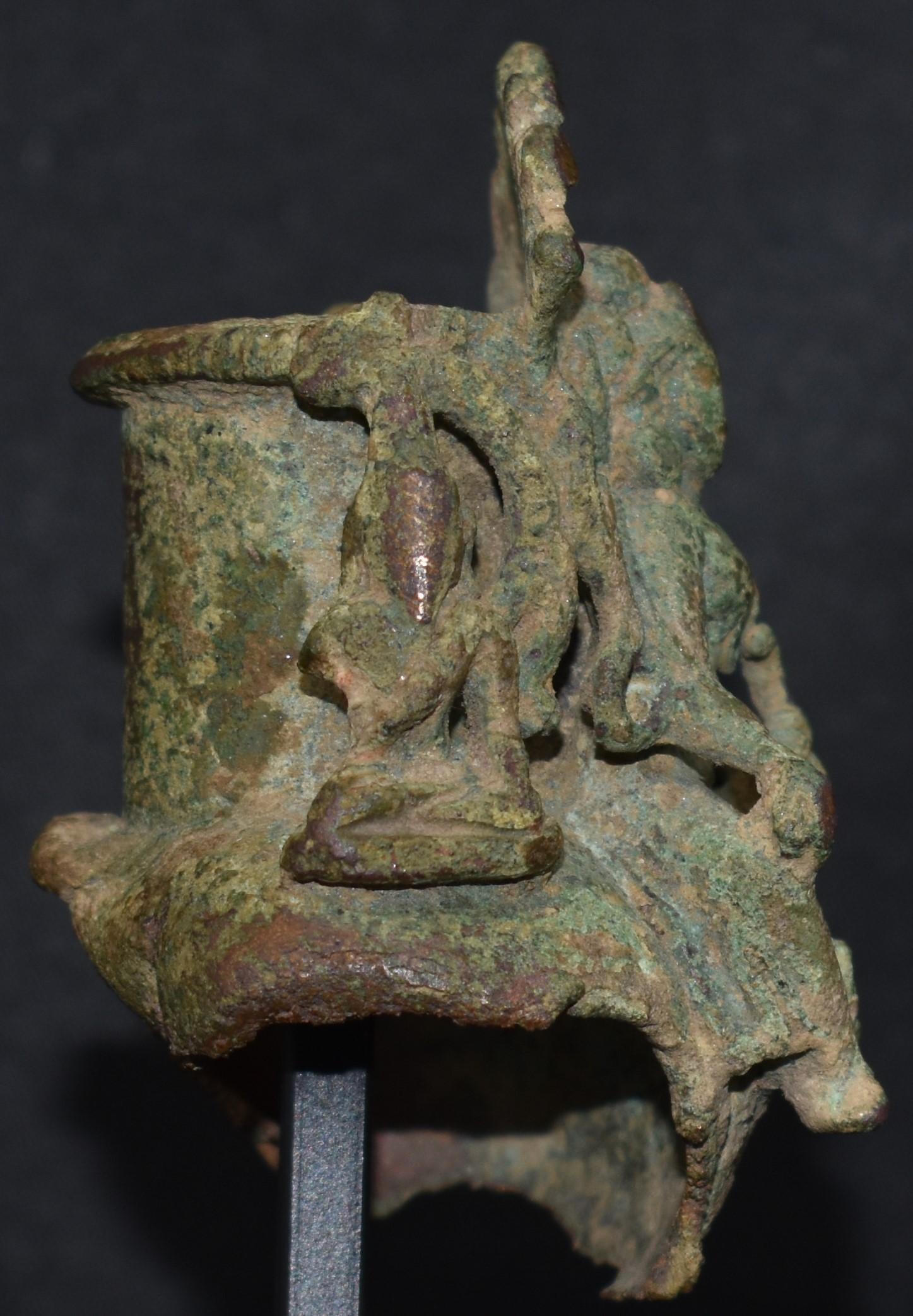 This vigraha despite having been buried for a very long time, has retained the features. It is about 7 cm in height as it is. The full ewer will be about 16 cm in height. Amazing details for its size. This vigraha may be dated to 10th-11th century.