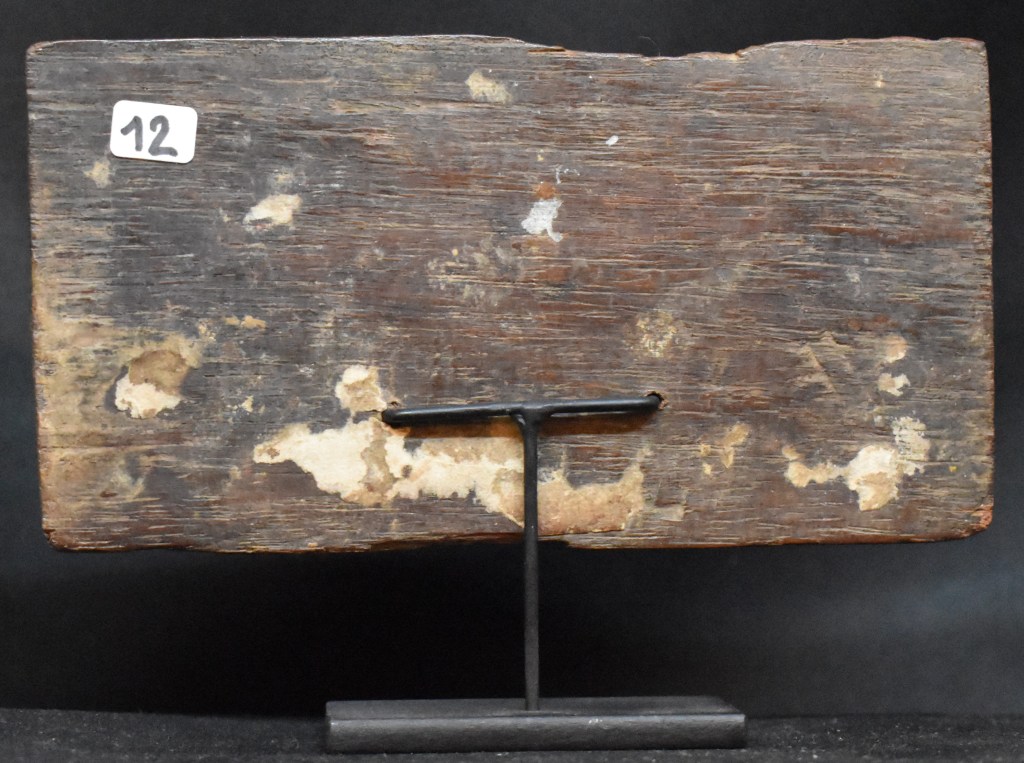 The wooden panel is from Nepal and it is probably a manuscript cover. There is significant softening of the features. It is probably 150 to 200 years old.
