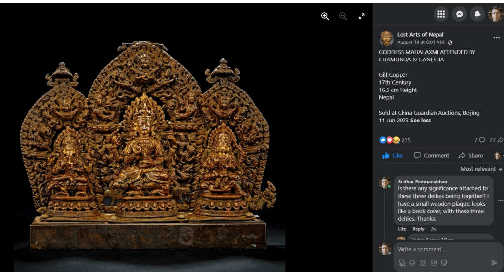 By chance, I found a similar grouping. It is a bronze and was published by the Lost Arts of Nepal on Facebook pages. The bronze is an excellent example of Newari craftmanship. It is included here to train your eyes.