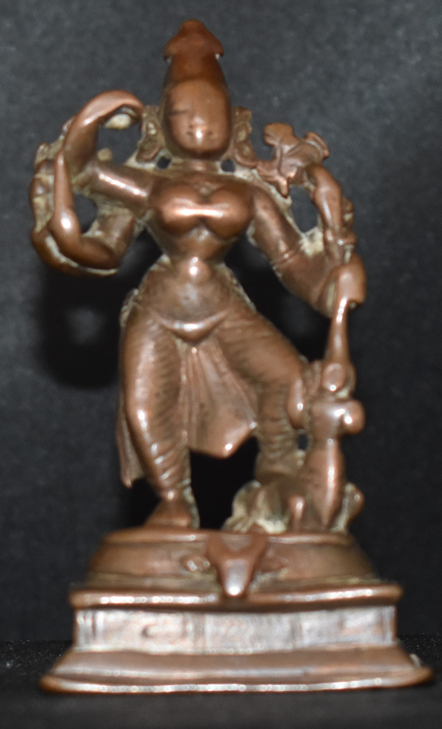It is rare to see Mardhini cast in copper rich bronze and that too in typical Tamil Nadu style.