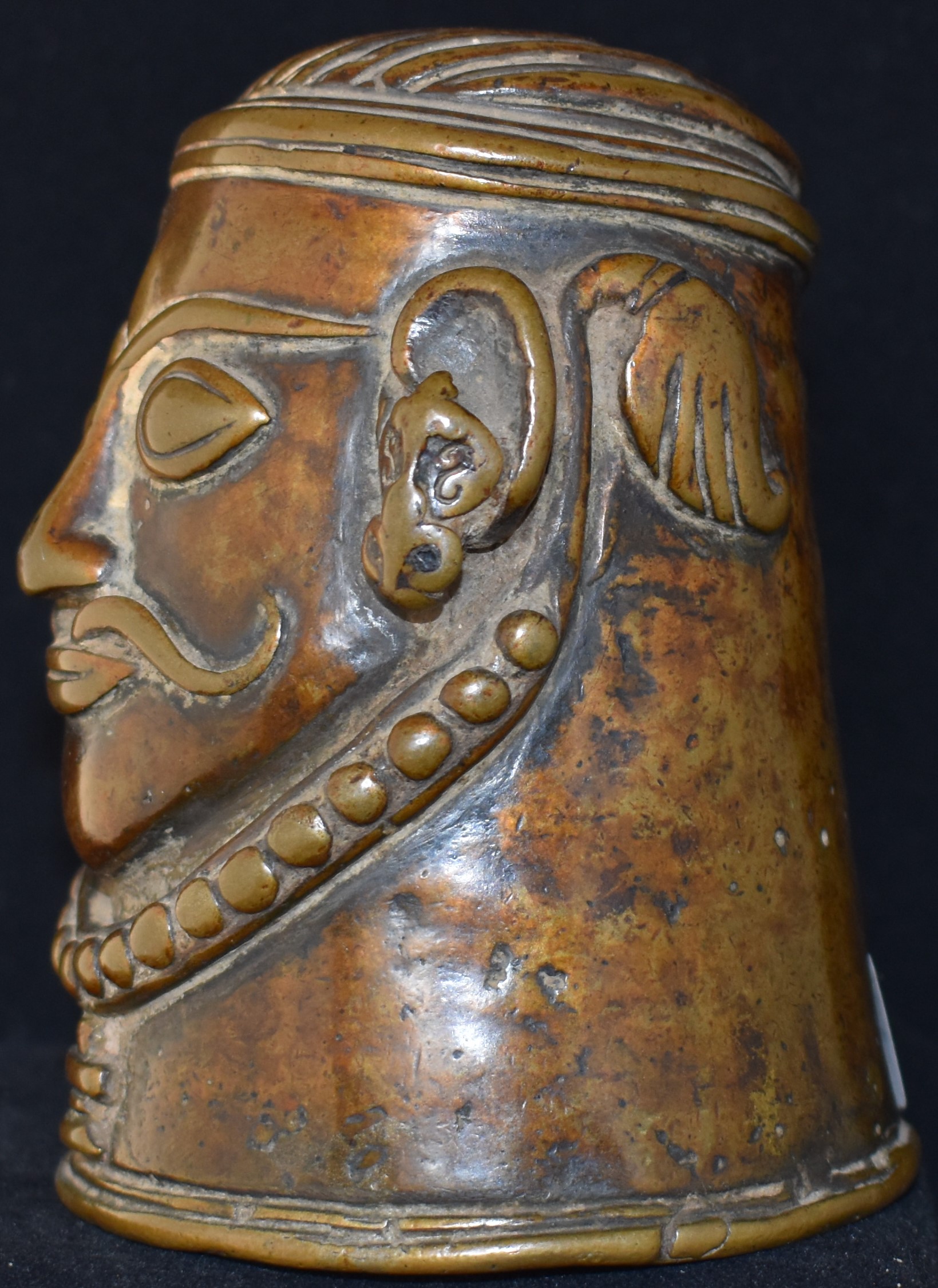 A robust Mukhalinga, turbaned, moustachioed and with solid ornaments. Note the earrings, shaped like Cobra (Sarpakundala) and the necklace.