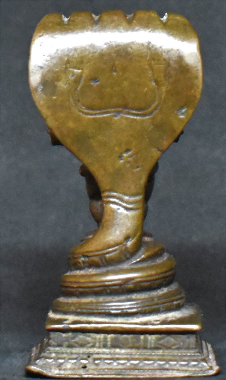 This idol is likely to have come from Tamil Nadu (copper-rich alloy, the incised patterns on the base and casting quality)and it is about 7 cm in height. It is a much loved and worshipped idol. This may date to the eighteenth century.