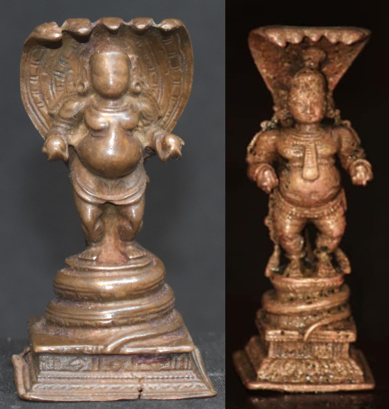 Below is a comparison with a Vigraha in worship (our right) in Kukke Subramanya Matha.