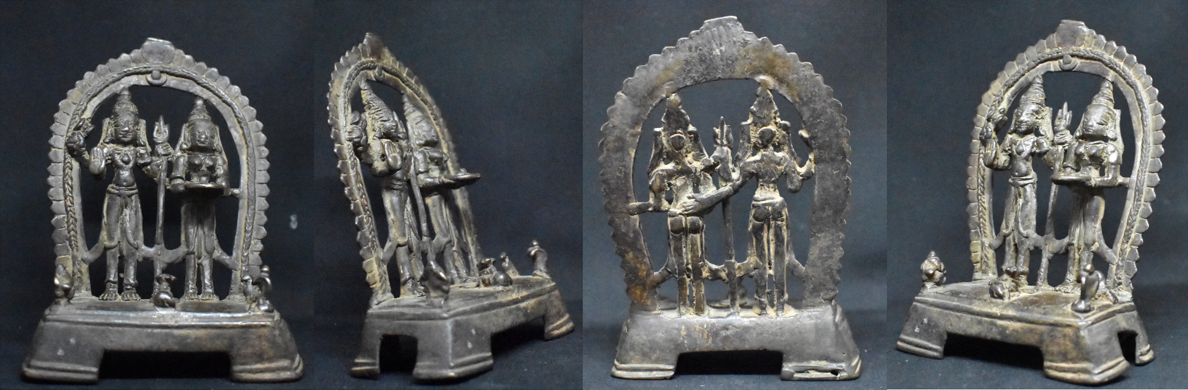 Normally the female consort is smaller than the male figure (Dasa Tala Vs Nav Tala). But not in this case and Parvathi is as tall as Shiva and definitely holding that position.