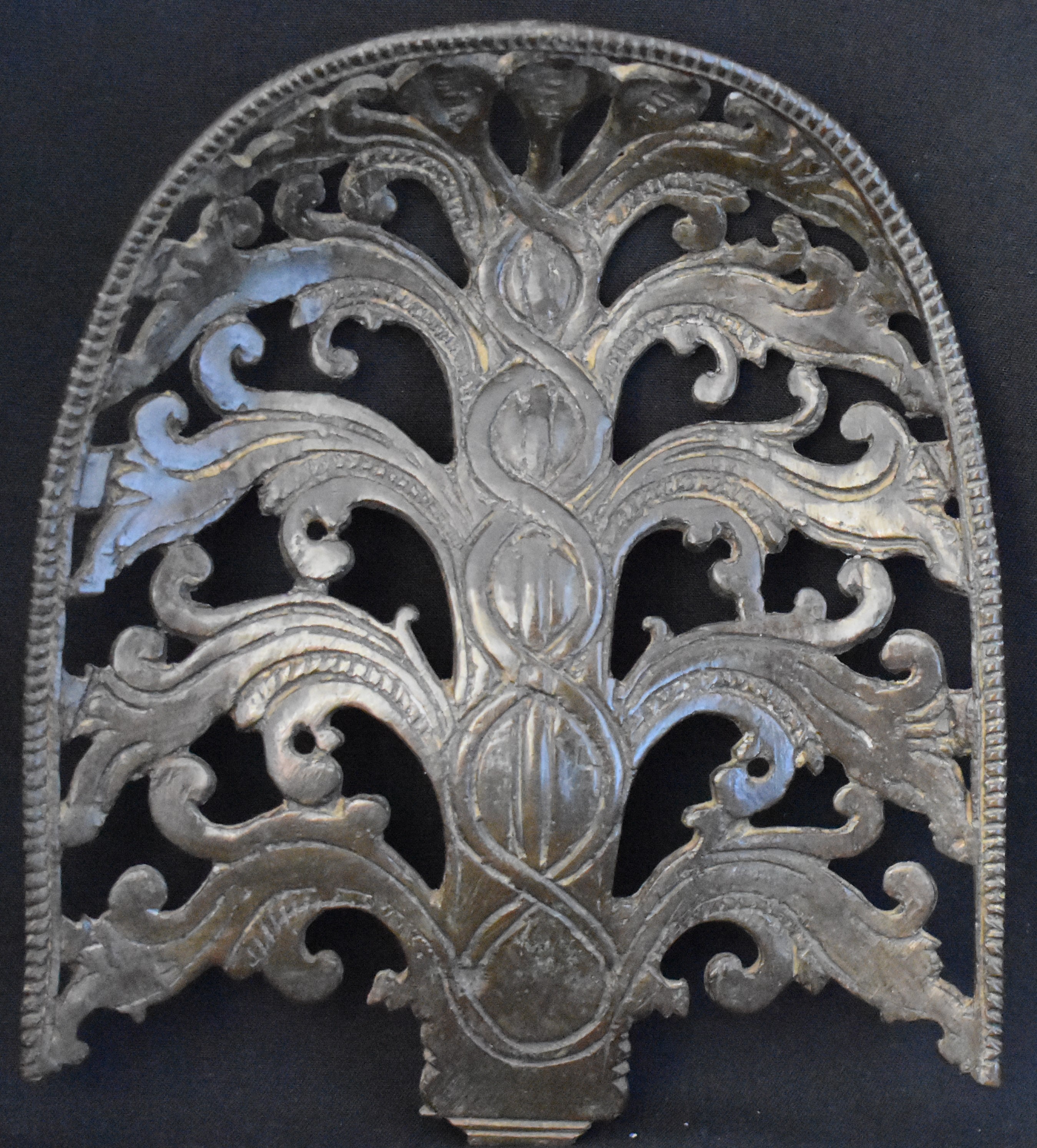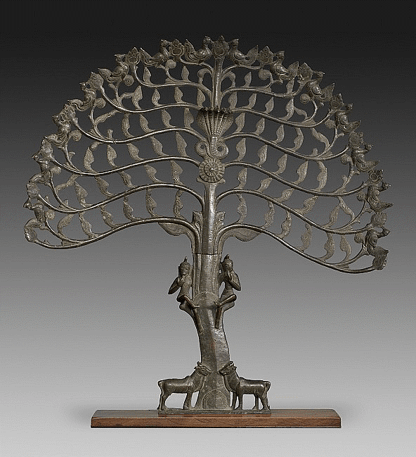 Rama is sitting on an inverted lotus which in turn is supported by a rectangular pedestal. A typical construction. Rama is framed by a tree as an aureole, with three cobras in the middle. The tree reminds me of the Tree of Life, an example from Nelson Atkins museum, Kansas. As shown on our right.