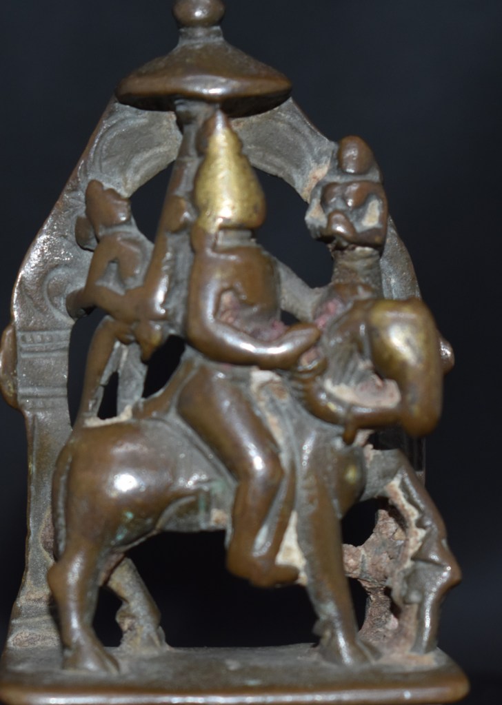 This Vigraha is about 9 cm tall and it is from Western India, possibly Gujarat. This Vigraha may be dated to the 11th century or earlier. This is one of the rarer bronzes in my collection.