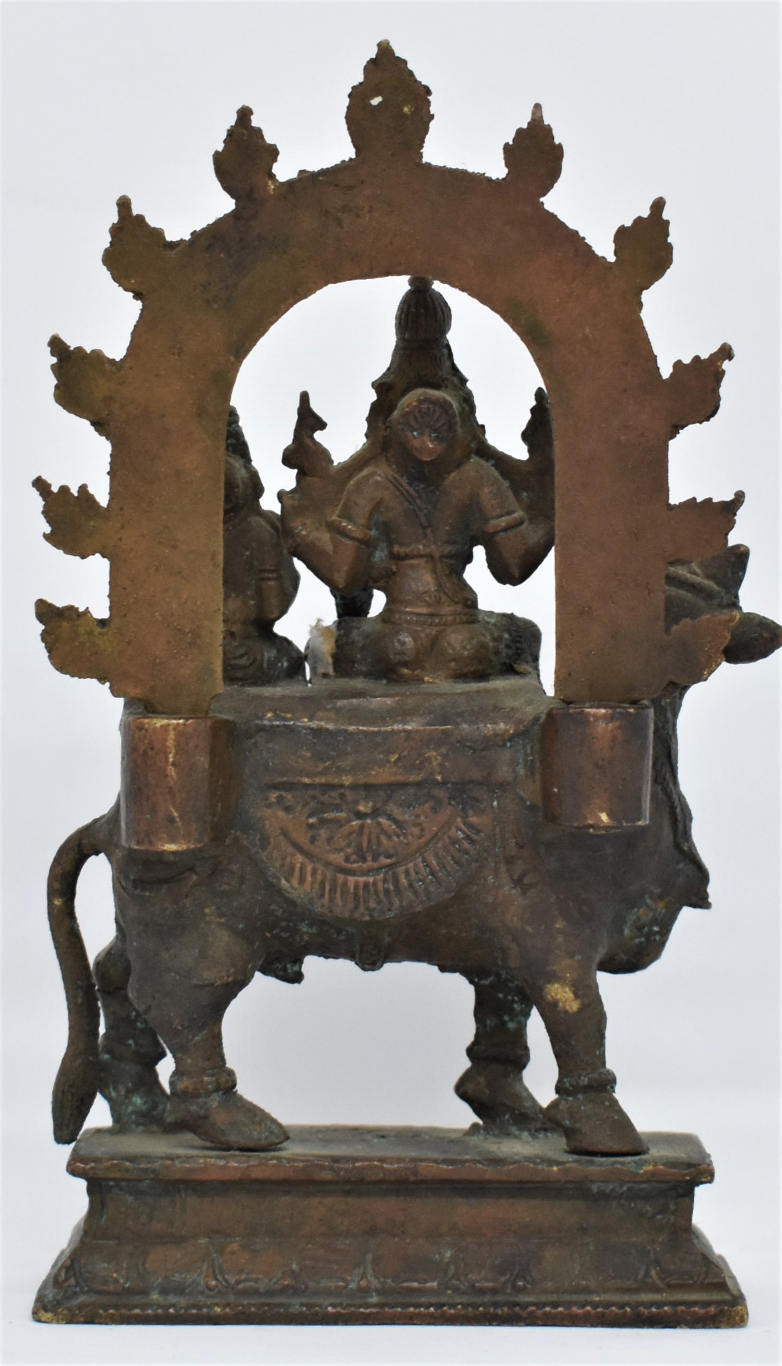 This composite Vigraha made up of 6 parts, shows Shiva and Uma riding a Rishabha, Shiva’s vahana. The deities are framed by a prabhavali. Shiva is holding Ankusha and Mirga in his rear hands.