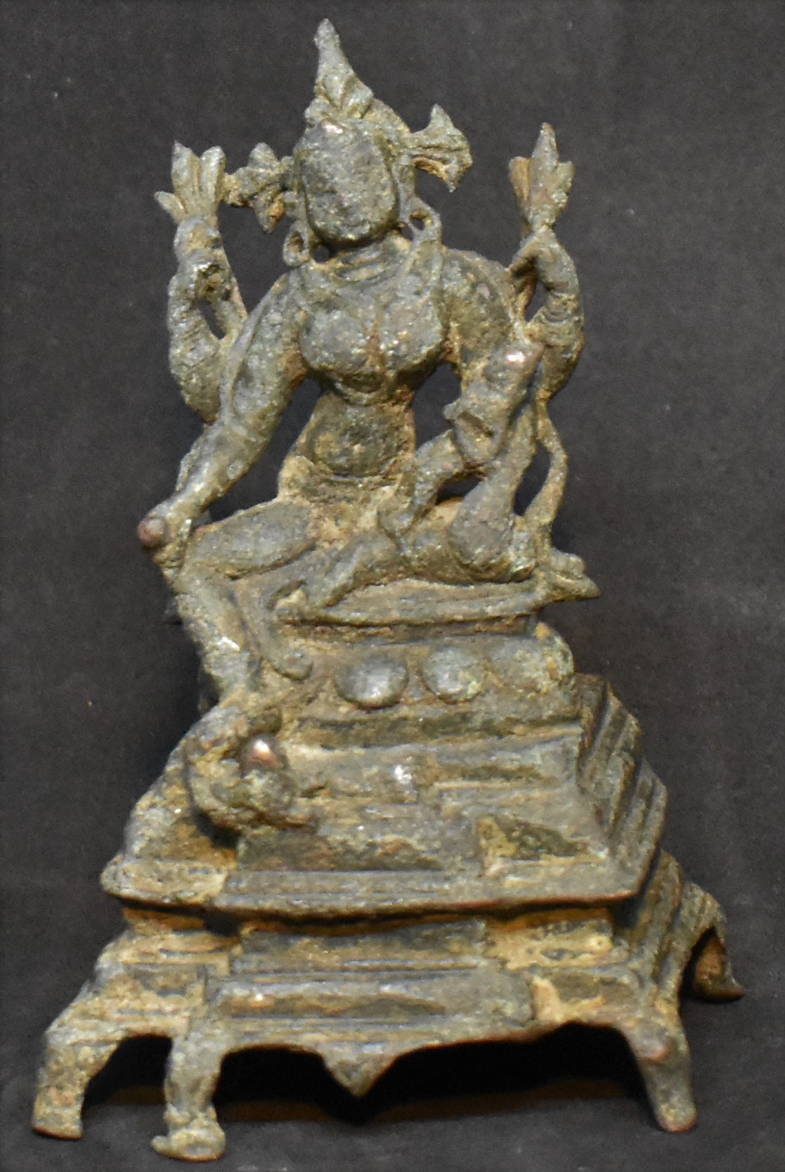 This bronze is about 10 cm in height. It is from Bengal (West Bengal or Bangladesh). Going by the example in the book ‘Eastern India bronzes‘ this may date to the 10th century.