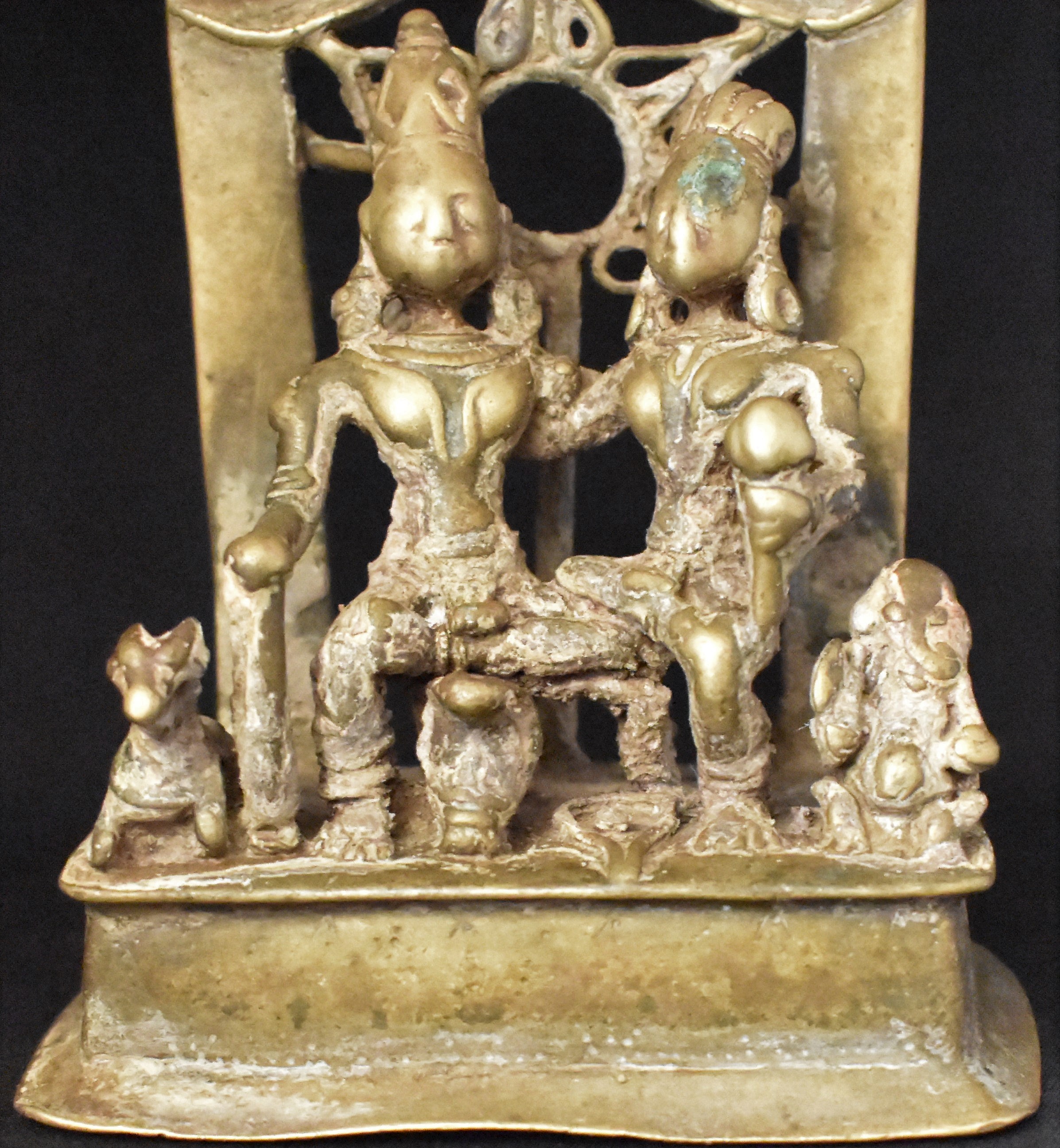 The Nandi, Cobra, Linga and Ganesha on the base suggest adoption of Panchayatana concept prevalent in Vidarbha region, Central India. In Vigrahas from Northern part of India, it is not unusual to see Siva’s family showing only Ganesha and missing out their other son, Karthikeya. Not unlike Soma Skanda sculptures from South India, where Skanda (Karthikeya) is shown and not Ganesha.