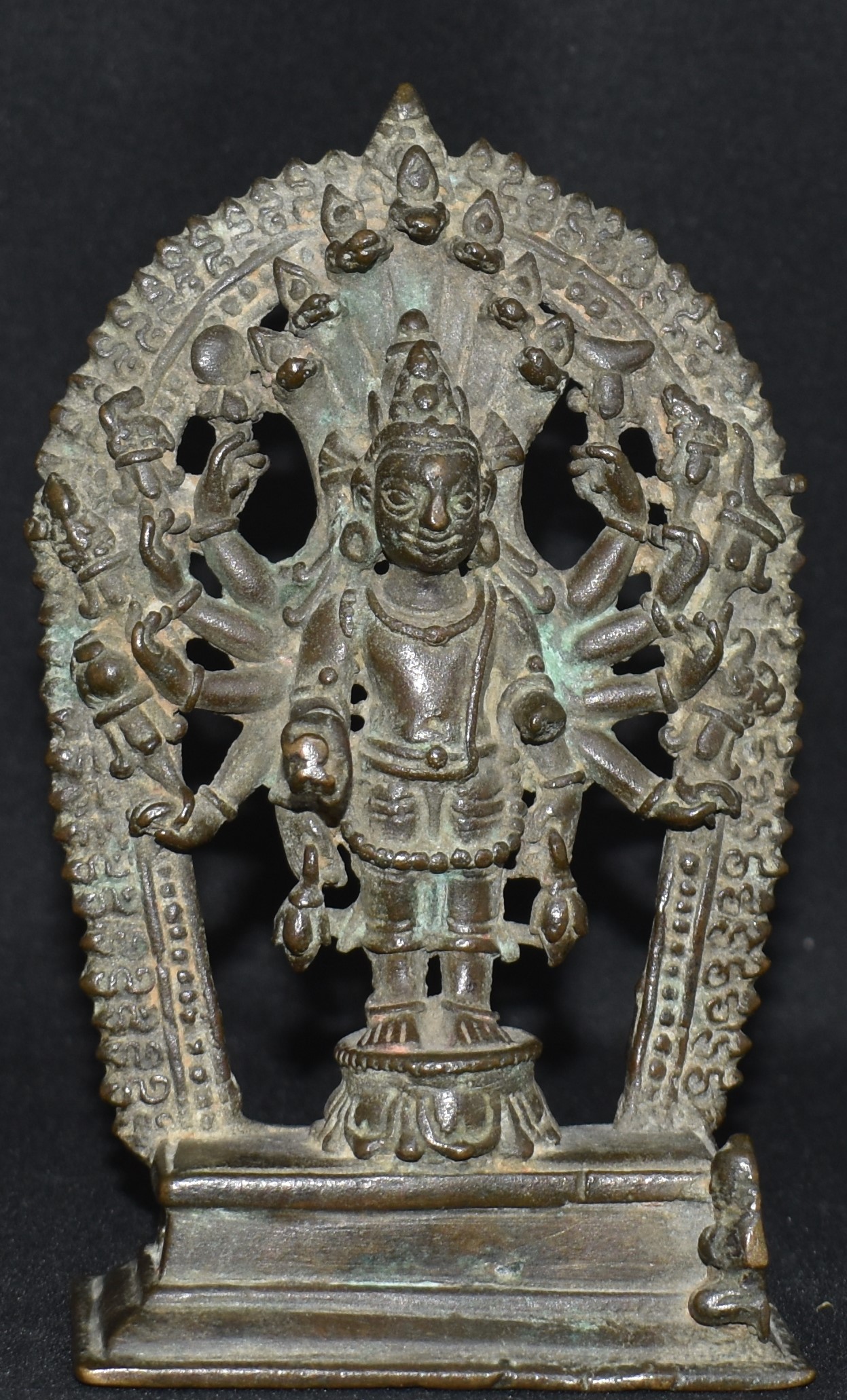 One of the interesting features is eight side-arms hold lotuses and the attributes are supported on the lotuses. Unusual indeed.