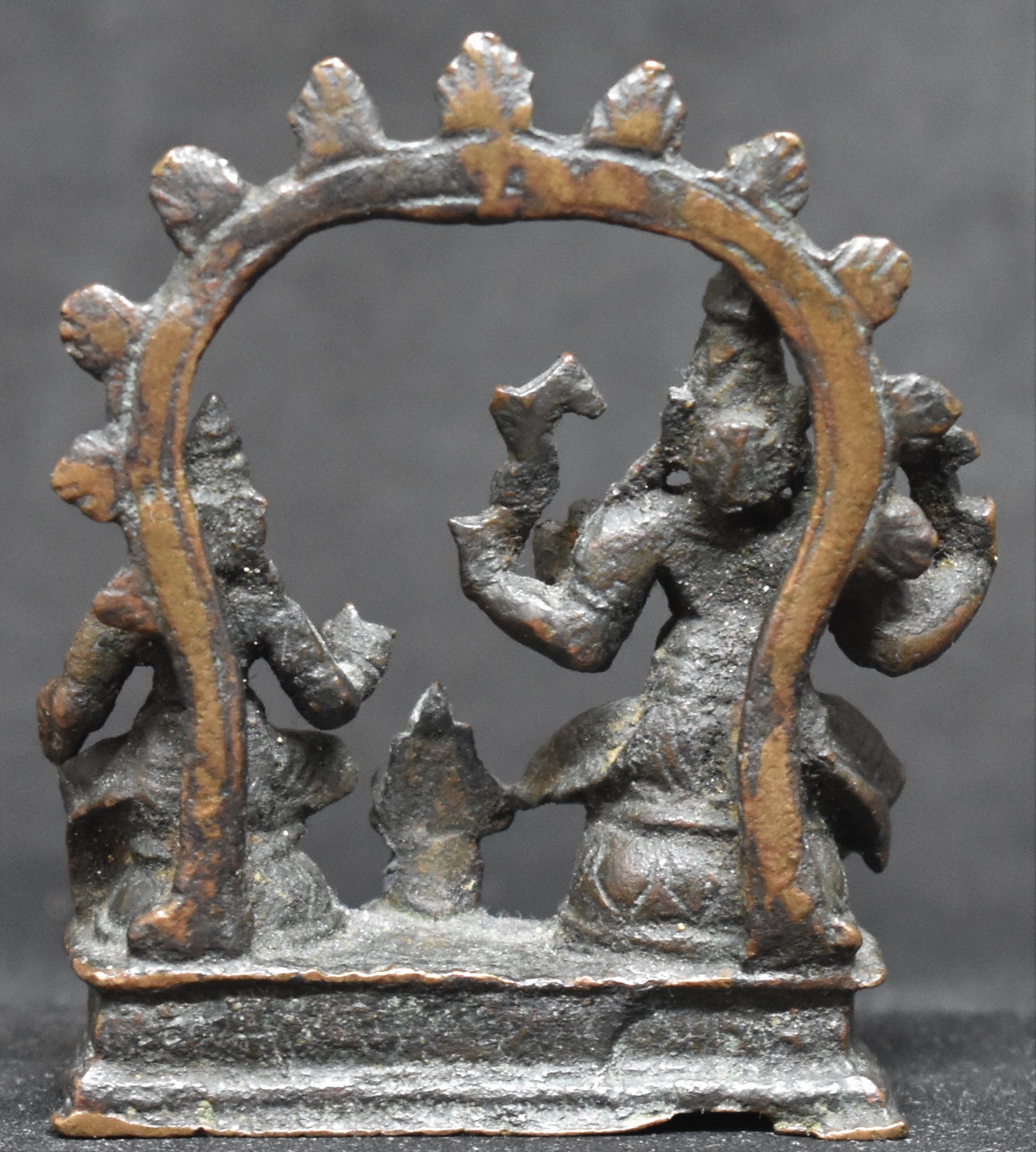 Rare to see Somaskanda Vigrahas made for home worship. The patina is deep and the Vigraha shows wear from decades of worship. This Vigraha may date to the eighteenth century or earlier.