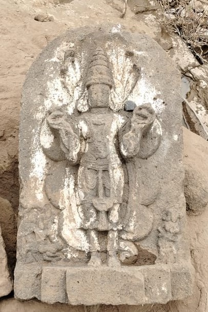 Swanand gave me an example of a stone sculpture with similar iconography. The sculpture is somewhere near Sangli and it is shown on our right. Thanks to Swanand, the geographical attribution is strengthened.