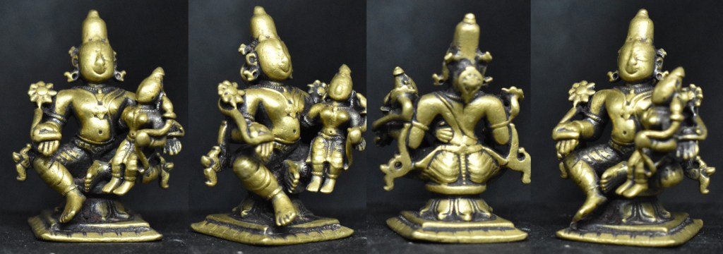 This Vigraha is from Western India. It is 6 cm in height, a miniature packed with details. This vigraha may be dated to the eighteenth century or earlier.