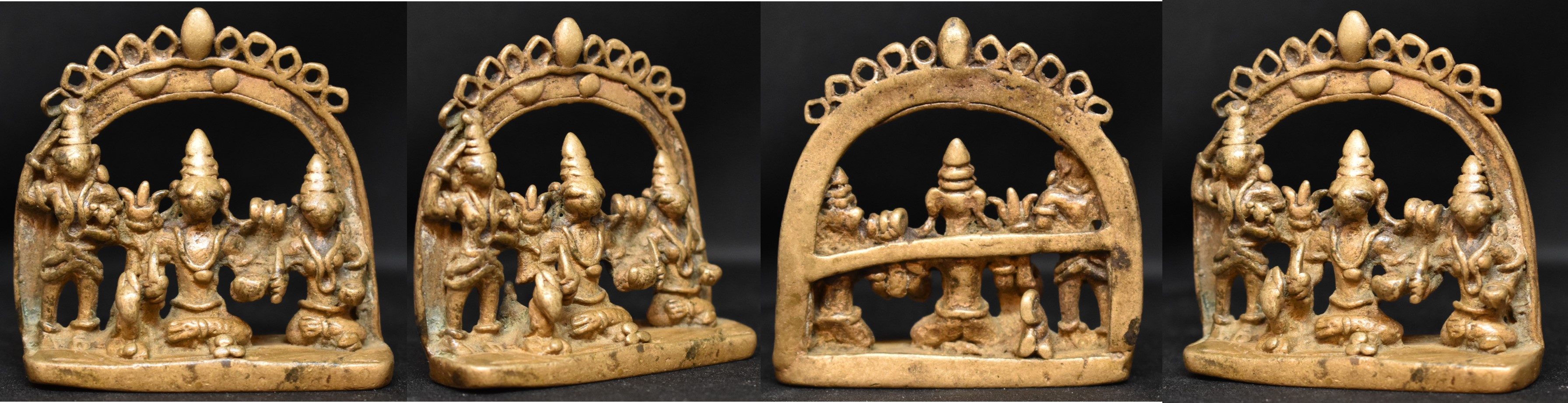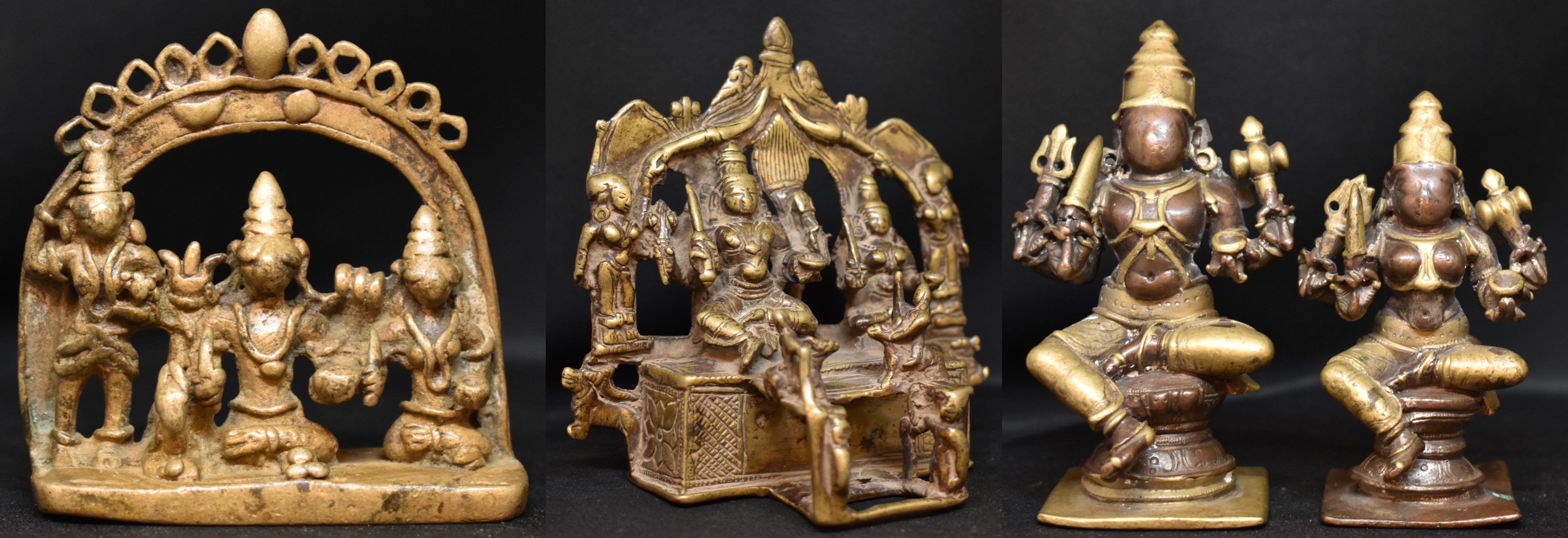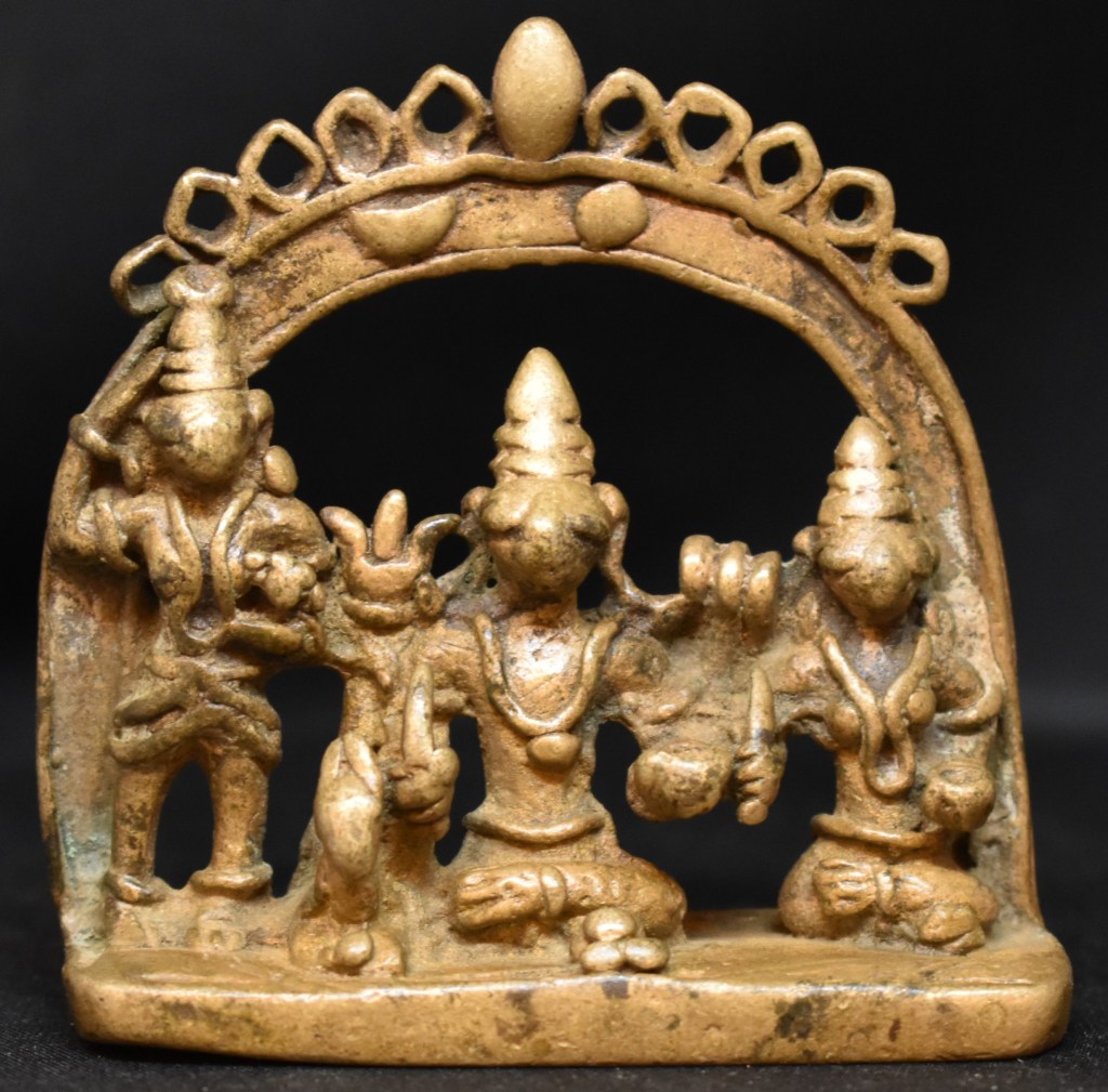These three bronzes are from the North Karnataka – Maharashtra region, a geographically contiguous area. The Tribal bronze is relatively newer and may be dated to the early 20th century. Note the wear to the crowns.