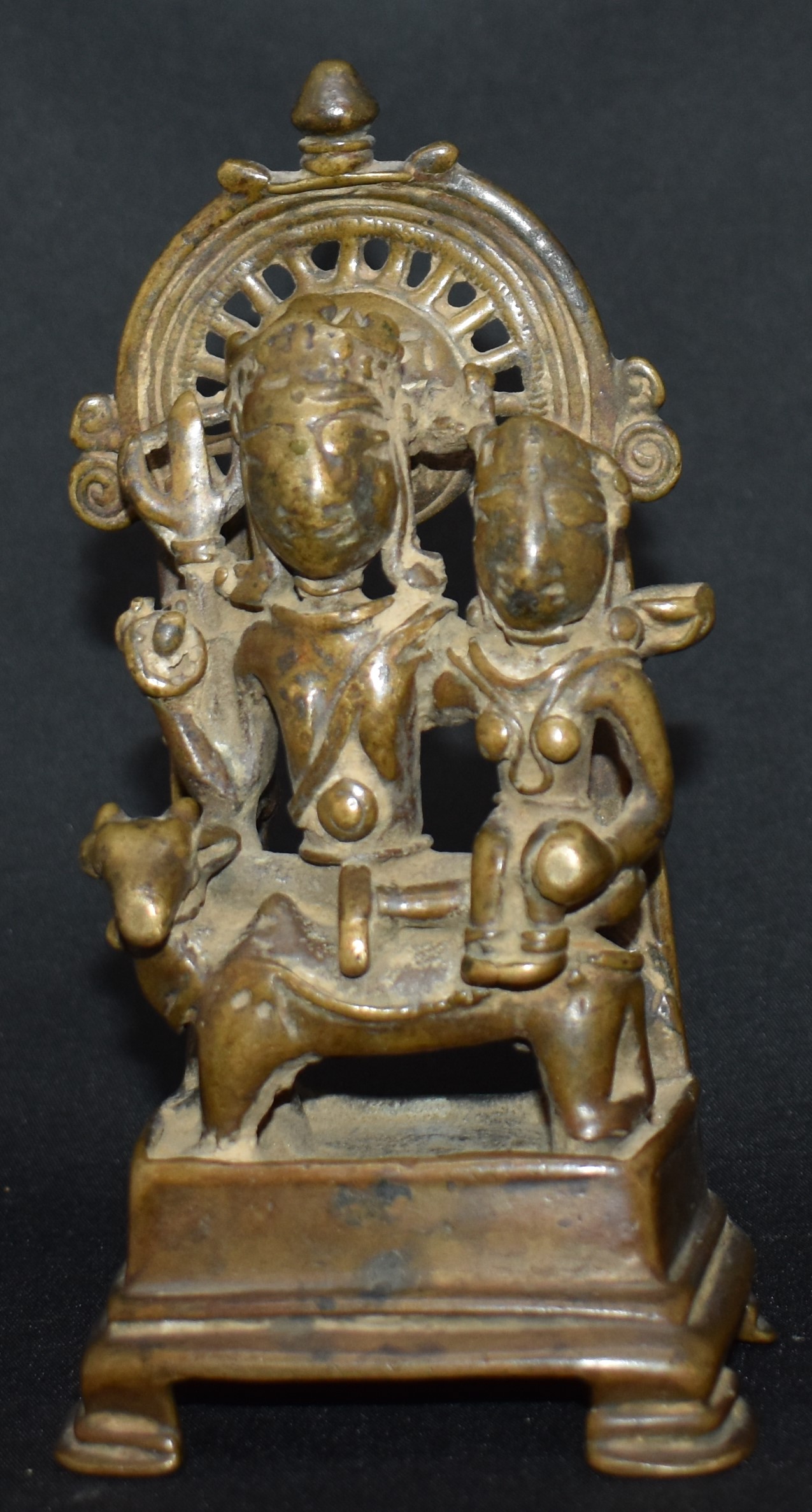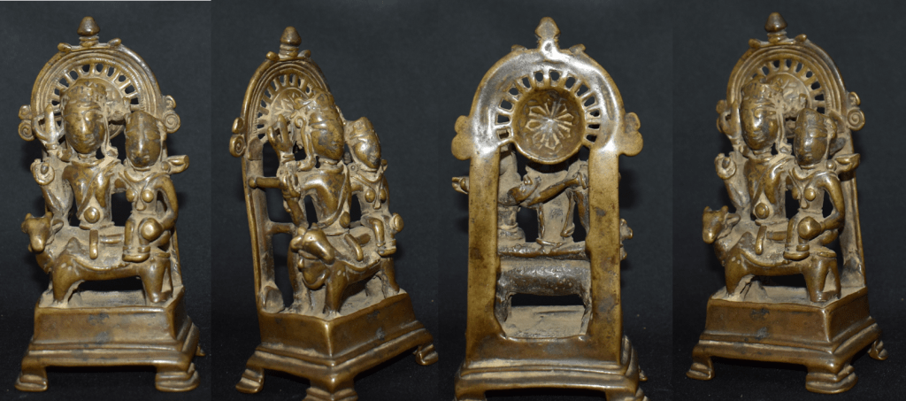 This is Uma Maheshwara from Himachal. Here Siva, Maheshwara, and his consort Uma are seated on Siva’s vahana, a bull.