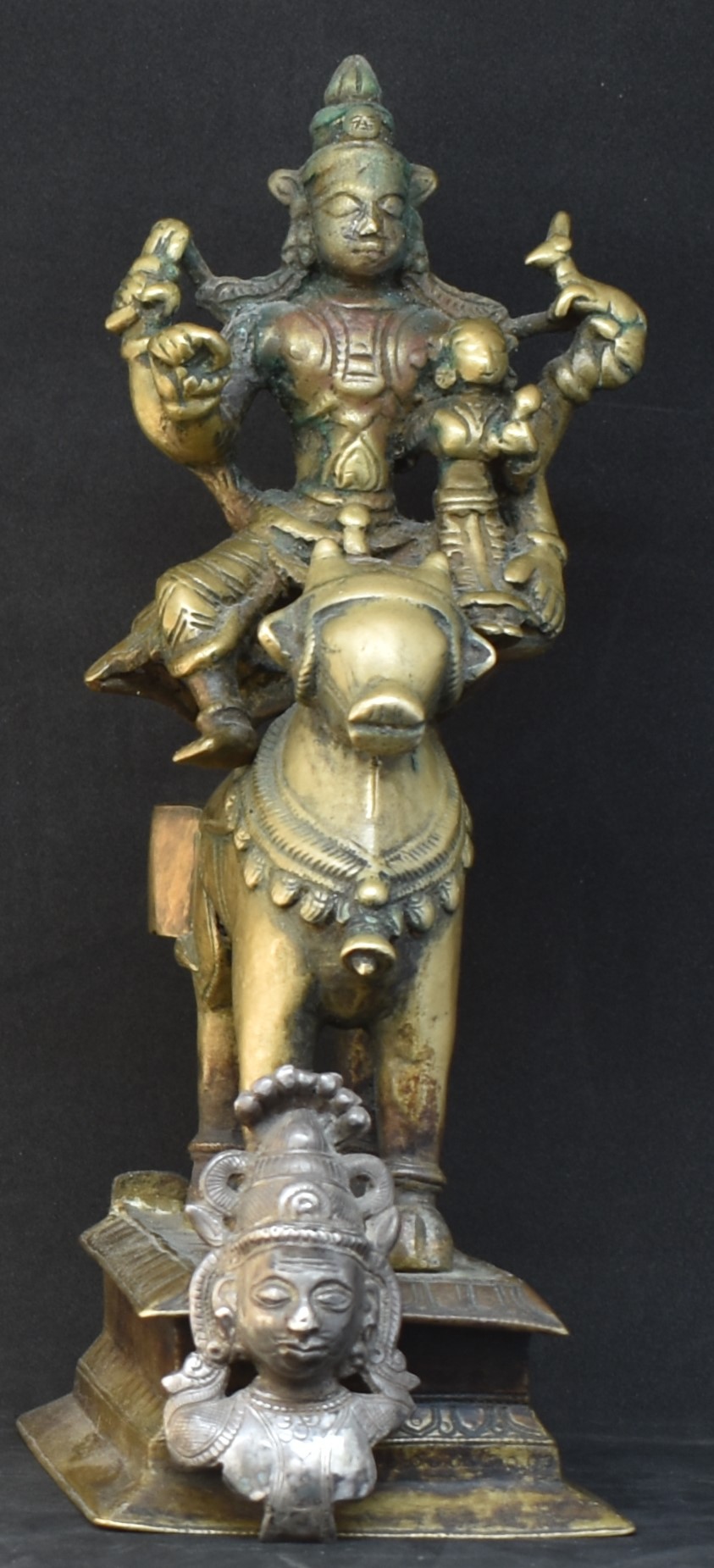 This vigraha most likely comes from North Deccan, going by the material used, the theme and Uma’s features. It is about 30 cm in height. The height of the vigraha, the Kavacha suggest this is from a temple.