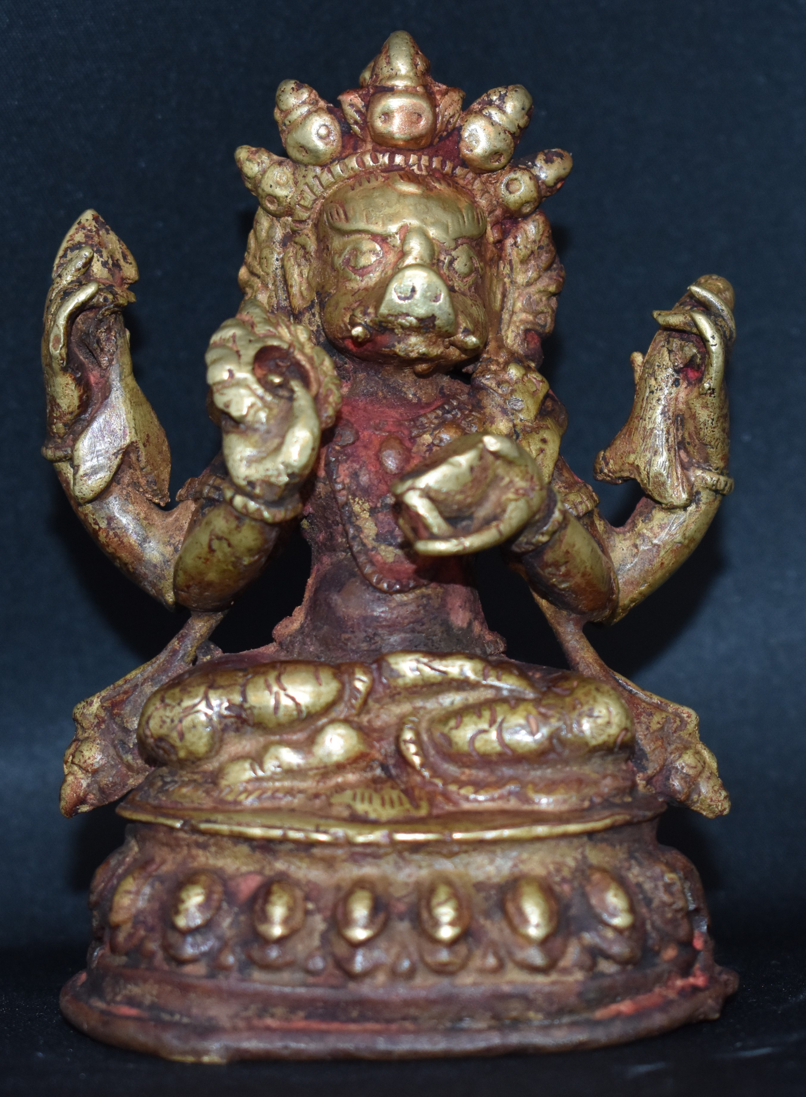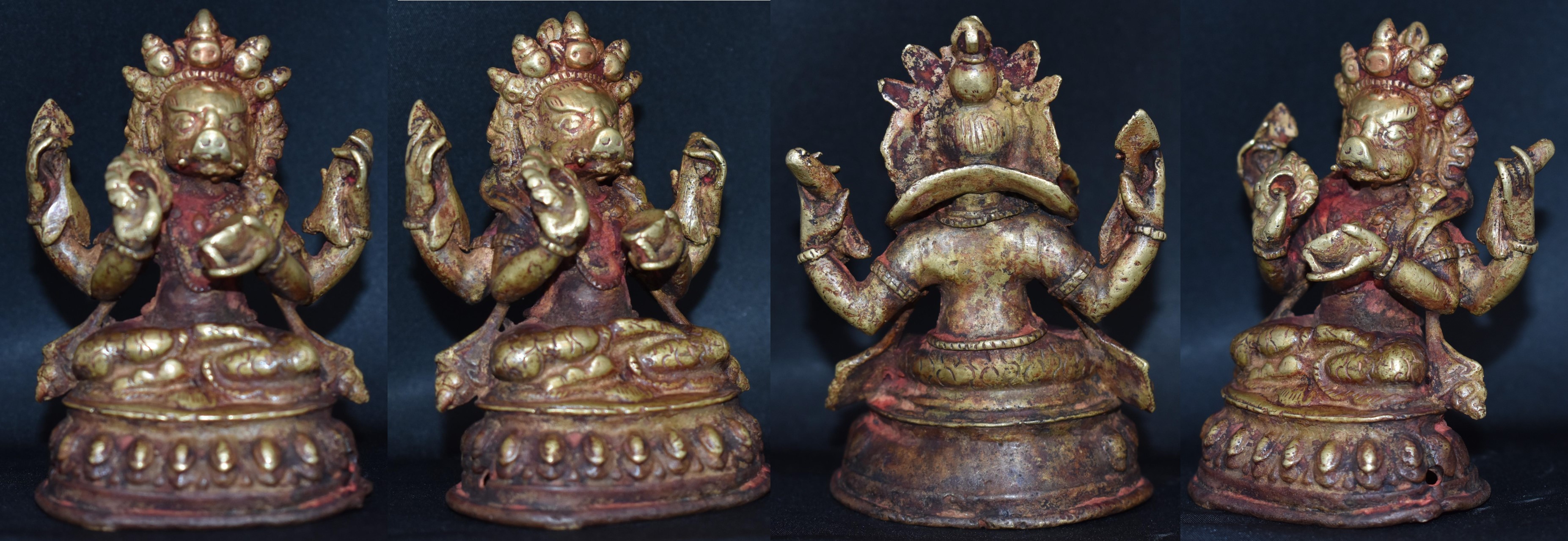 The canine teeth and the tiara featuring skulls suggest this Varahi may have been used in Tantric worship.