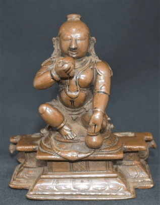 Silparatna refers to Krishna as an young boy ‘with a pot of butter under his left arm and eating out of a ball of butter placed in the palm of right hand’ as Santana Gopala.