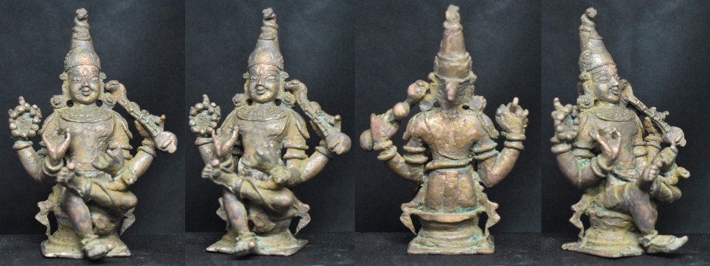 This particular Vigraha seems to be a combination of the first three, Yoga, Vykhana and Veenadhara.