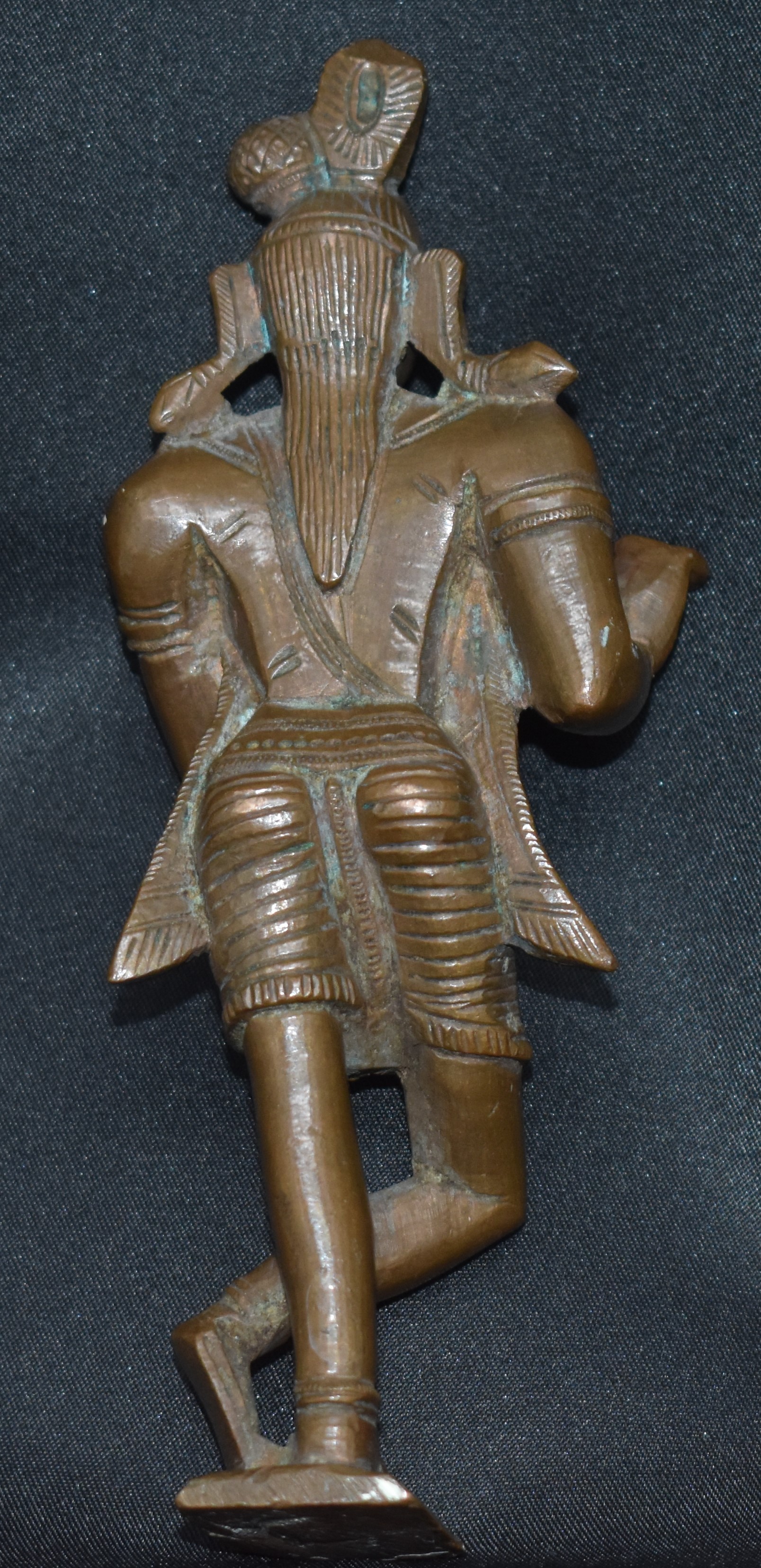 This Vigraha is about 14 cm in height. This may not be more than one hundred years old. Included in my collection more for the iconographic features (hair arrangement, peacock feather and scarf) and for me to wonder which part of the country is it from.