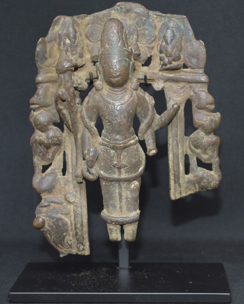 Going by the examples in the book Antiquities of Himachal, this Vigraha is from Uttar Pradesh and may be dated to the eleventh-twelfth century. A real survivor.