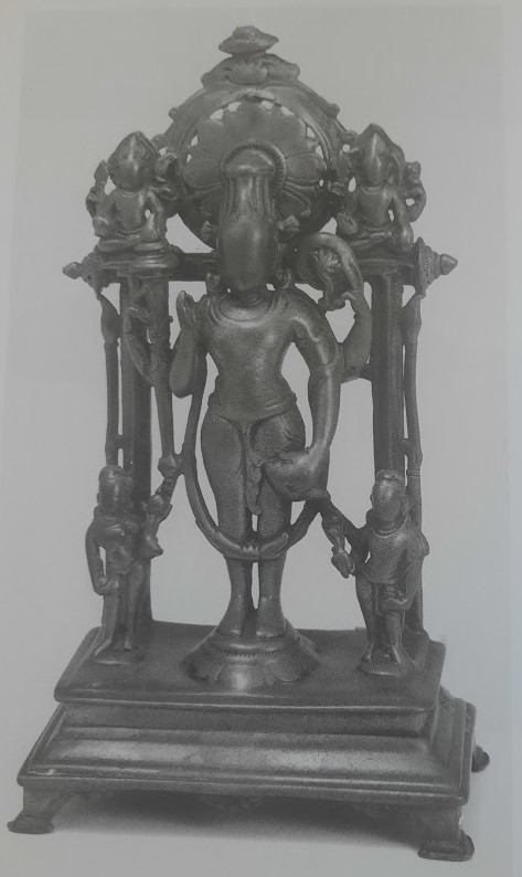 26 May 2021: Updated the blog significantly. Earlier I had, incorrectly, identified the figure on Vishnu’s right as his consort. Thanks HJH, a senior collector, the identification is now corrected. It is Garuda, Vishnu’s vahana. Below is a close up of Vishnu’s attendants Garuda and Sri Devi.