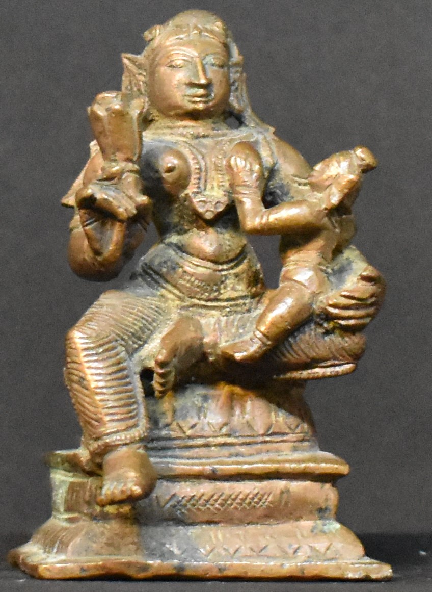 This is likely to have come from Tamil Nadu. High copper content, engraved patterns on the base point us in that direction. This may not be earlier than the nineteenth century. There are no obvious signs of worship. Not sure whether it was meant for worship.